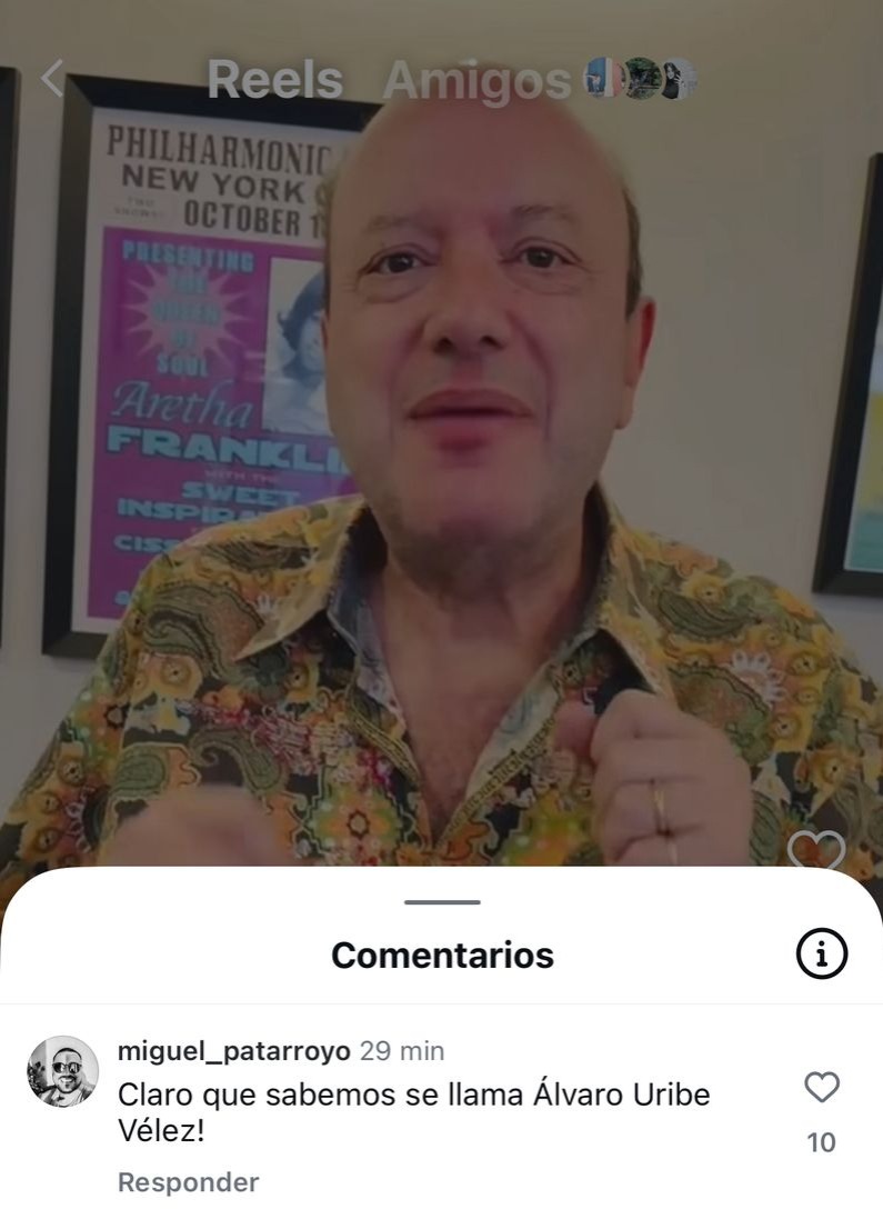 Entre las respuestas, una en particular llamó la atención. Desde la cuenta @manuel_patarroyo, se escribió: “¡Claro que sabemos, Álvaro Uribe Vélez!”. Al revisar el perfil del usuario, se identifica como Miguel Patarroyo Figueroa, quien en la descripción de su biografía asegura ser productor de RTVC, el sistema de medios públicos del Estado colombiano.